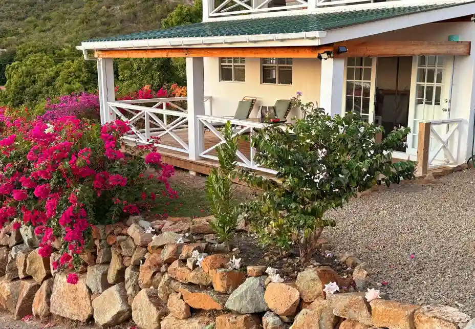 We have carefully designed it to create an environment whereby guests can disconnect from the busyness of everyday life and rejuvenate. Its rural, elevated position offers uninterrupted sea views with a cooling breeze running through the property. Air conditioning is installed to ensure you have a comfortable stay. Listen to the tropical sounds of the Caribbean from the sweeping verandah while watching pelicans dive for fish at Pelican Island. On a clear day neighbouring islands of volcanic Montserrat and uninhabited Redonda are visible.