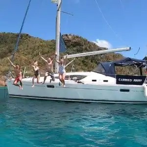Take a circumnavigation tour around Antigua with food and drink included. Its a party vibe.